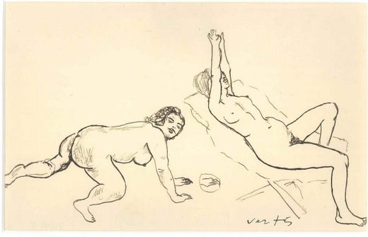 Emmanuel Marcel Vertès, born Vértes Marcell in Újpest (Hungary) on 10 August 1895 and died in Paris 16th arrondissement on 31 October 1961, was a Hungarian-born French painter, engraver, illustrator and costume and film designer. After studying with Ferenczy at the Beaux-Arts in Budapest, Marcel Vertès produced political posters during the First World War. Going into exile at the end of the hostilities, like his comrades Mihály Bíró and Róbert Berény, he studied at the Académie Julian in Paris. He made a name for himself in France in the mid-1920s, particularly for his lithographs and illustrations. He published L'heure exquise, a series of erotic engravings, followed by Le pays à mon goût. His favourite subjects were the circus, balls and brothels. His real fame came with an album of lithographs entitled Dancings. Among the works he illustrated were Chéri and La Vagabonde by Colette, L'Europe galante by Paul Morand and Le Cirque by Ramón Gómez de la Serna, published by gallery owners Madeleine and Pierre Trémois. He was associated with the Hungarian cartoonist Alex Szekely.