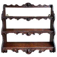 Antique Hand Carved Oak Wall Mounted Shelf