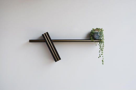 Wood with Inlaid Copper Wall-Mounted Floating Shelf by Huy Lam, ""Elevate No. 4"