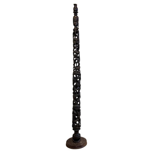 Eccezionale e rarissima scultura Makonde dell'Albero della Vita intagliata a mano, che si ritiene sia stata realizzata in legno di ebano. Questo pezzo di grande effetto si erge per 65 pollici di altezza, con una base larga 11 pollici e una larghezza centrale di circa 5 pollici. Opere di questa portata, materiale e maestria sono estremamente rare.