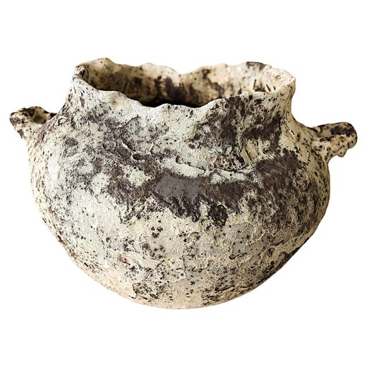Vaso contemporaneo di forma organica, rustico e bianco sporco in ceramica di Willem Van Hooff