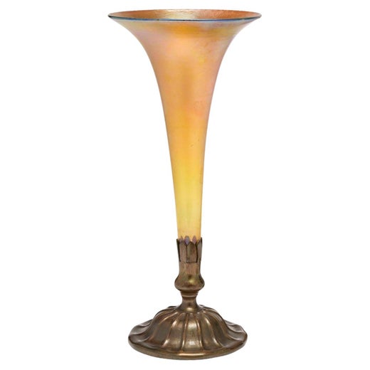Vaso con piedistallo Floriform di vetro artistico Louis Comfort Tiffany in oro Favrile