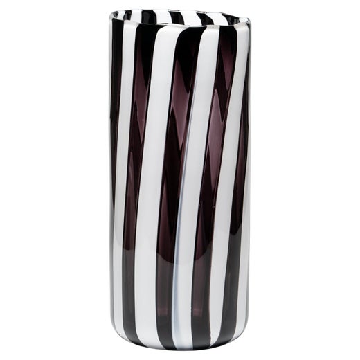 Un capolavoro di eleganza scultorea, questo vaso extra alto soffiato a mano di Murano in colore ametista affascina con la sua silhouette sfaccettata e la sua traslucenza eterea. Ogni...