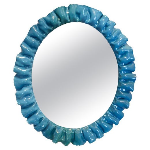 Splendido specchio in vetro di Murano di colore blu acquamarina, Venezia. Uno specchio che da solo arreda l'ambiente della tua casa.