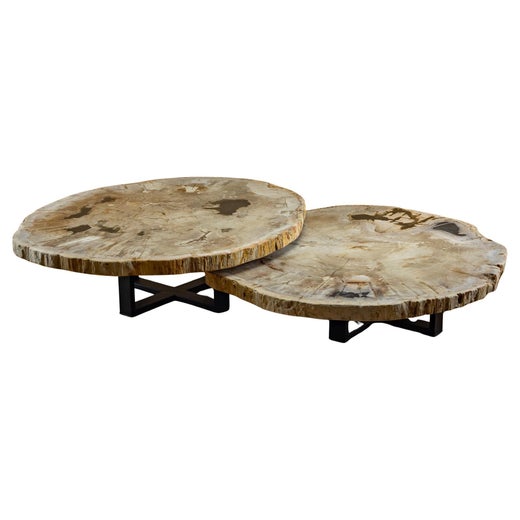 Tavolino Earth con piano in Wood pietrificato e base in bronzo di Elan Atelier
