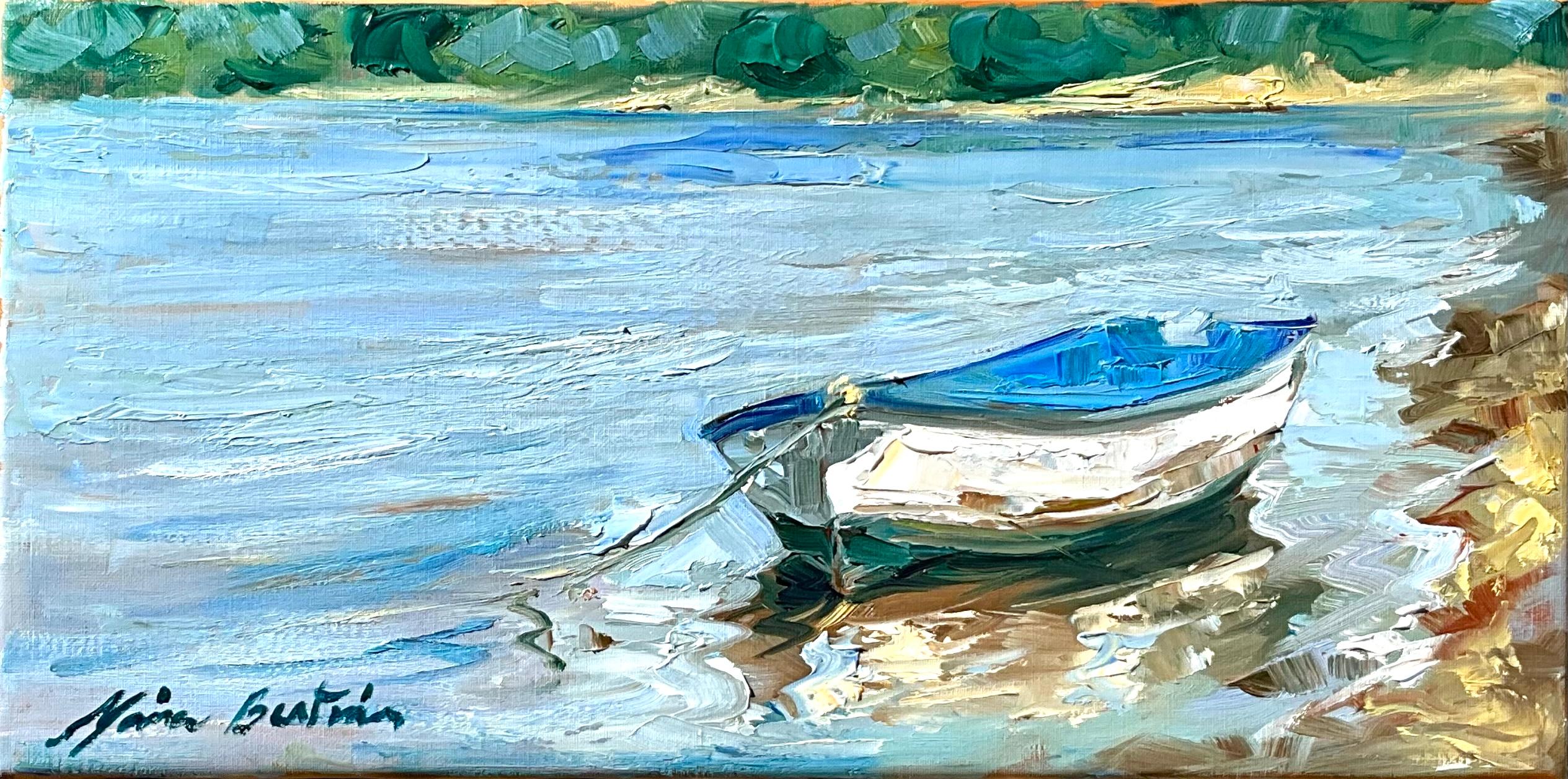 Barca Spagna olio su tela pittura paesaggio marino spiaggia