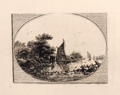 Questo raro dipinto a olio del 1790 raffigura un paesaggio di un villaggio nella tradizione di genere degli Antichi Maestri. La composizione mostra dei contadini riuniti vicino a un ...