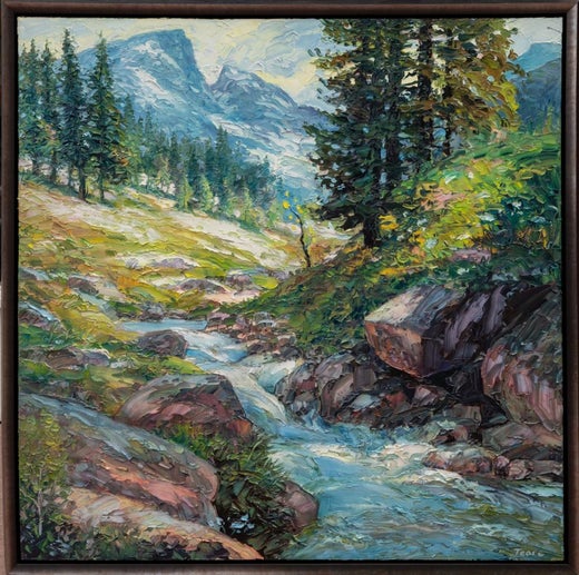 Gli alberi a impasto dell'artista Lisa Elley si ergono alti con una fitta trama e un delicato movimento del fogliame. Le foglie colorate che cambiano co...