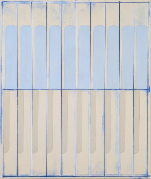 Mostra tutto"Blue Laps" 2025 Olio, composto per fughe, cera a freddo su pannello