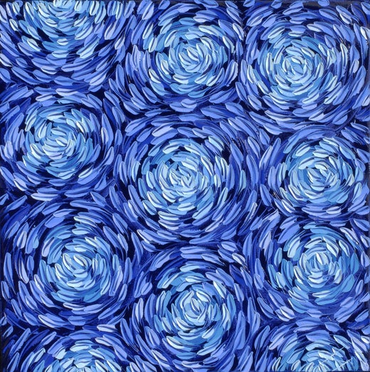 Stone dipinge utilizzando oli spessi su tela. Il suo processo inizia con linee fluide che fanno muovere l'occhio sulla tela come in una trance ipnotica. Poi stratifica il dipinto con una profondità di colore che incoraggia lo spettatore a vedere qualcosa di nuovo ogni volta.