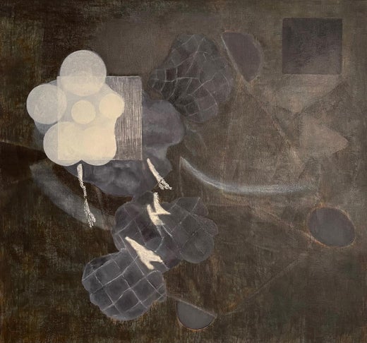 Subspace - Pittura a olio astratta geometrica contemporanea su tela quadrata