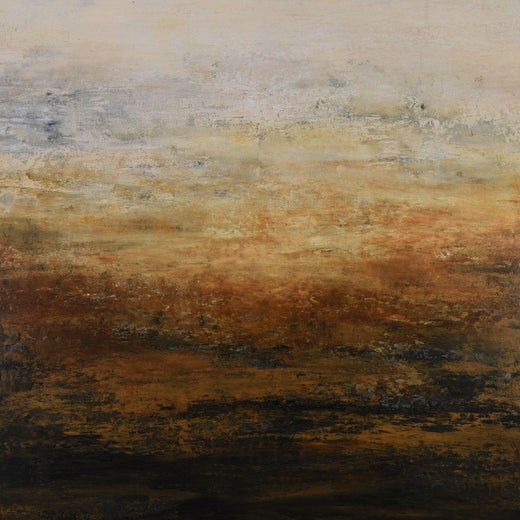 Nell'ambito della sua serie GeoHorizon, l'artista Lisa Carney esplora un paesaggio astratto. Blu tenui con accenni d'oro si stratificano su un orizzonte...
