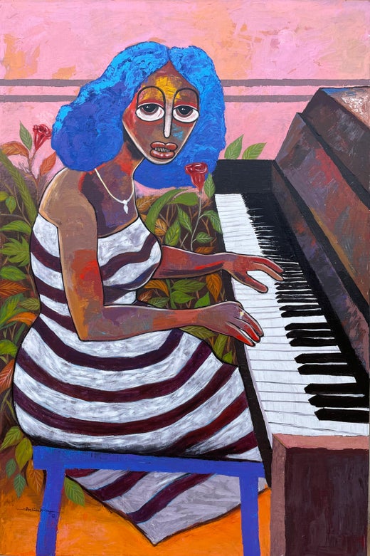 "Persuaso" di Innocent Chikezie - Pittura figurativa africana espressiva e luminosa