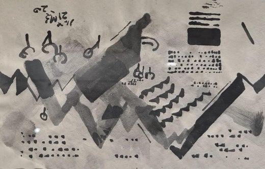 La composizione astratta a inchiostro di Haloi emana un ritmo meditativo, dove le f...