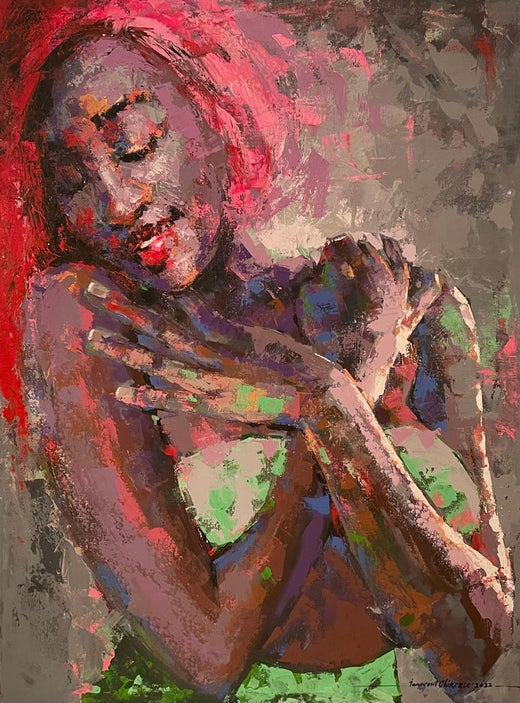 "Persuaso" di Innocent Chikezie - Pittura figurativa africana espressiva e luminosa
