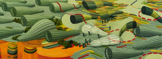 L'artista considera i suoi dipinti principalmente come paesaggi. Ultimamente, questi paesaggi hanno assunto un aspetto più manifatturiero che organico. A prima vista, i soggetti poss...