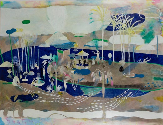 Questo dipinto fa parte dell'attuale mostra intitolata "La fantastica storia della montagna liquida" presso la Galleria Claire Corcia di Parigi.