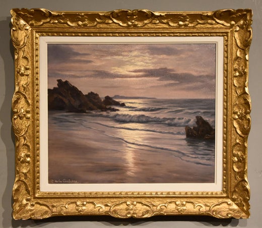 Dipinto a olio di Thomas Thomas Dingle Junior "Sera sulla costa" 1814 - 1919. Nasce a Lambeth ma si stabilisce nel Devon per dipingere le vedute locali. Ha esposto alla Royal society...