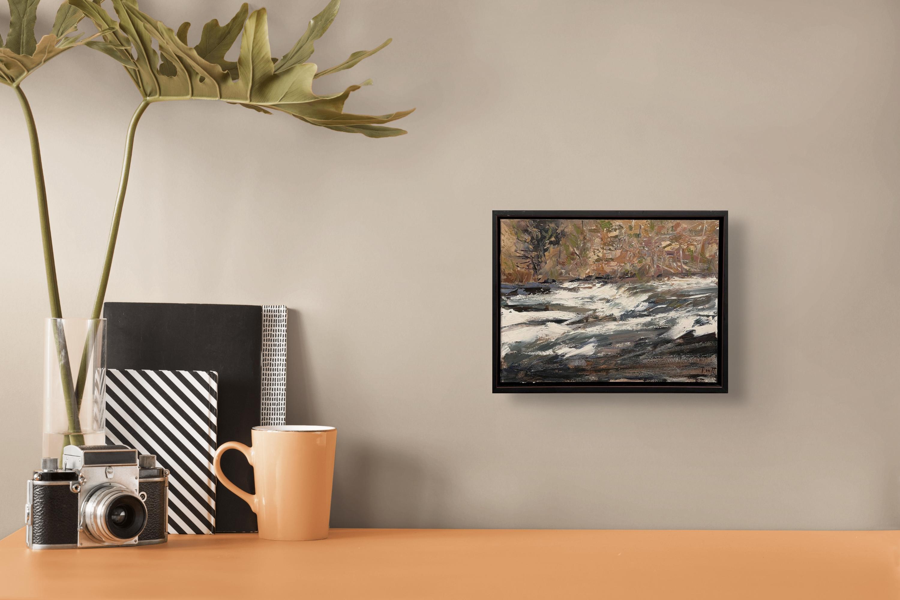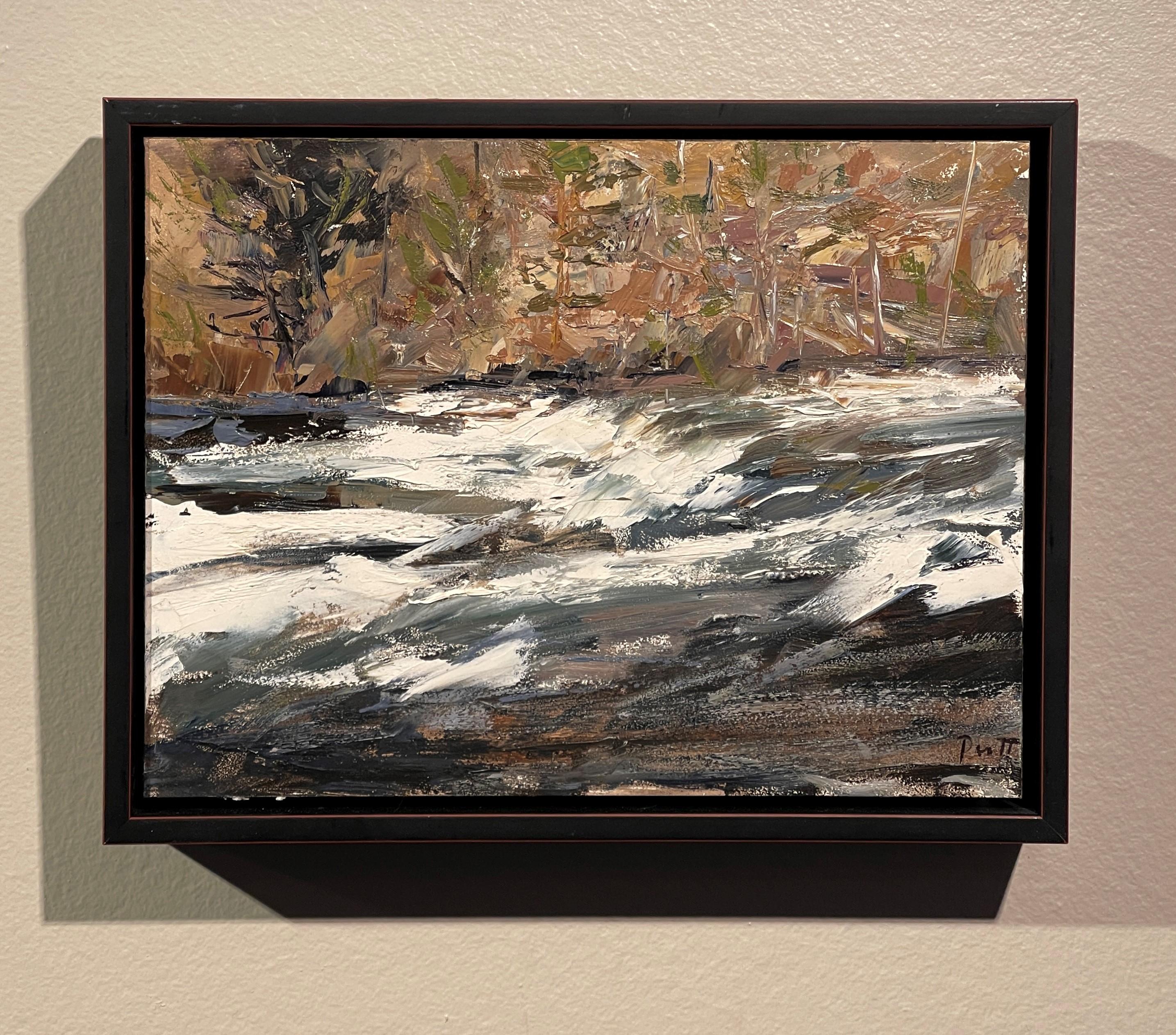 "Royal River", Astratto, Paesaggio, Autunno, Riva, Maine, Pittura a olio, 2023