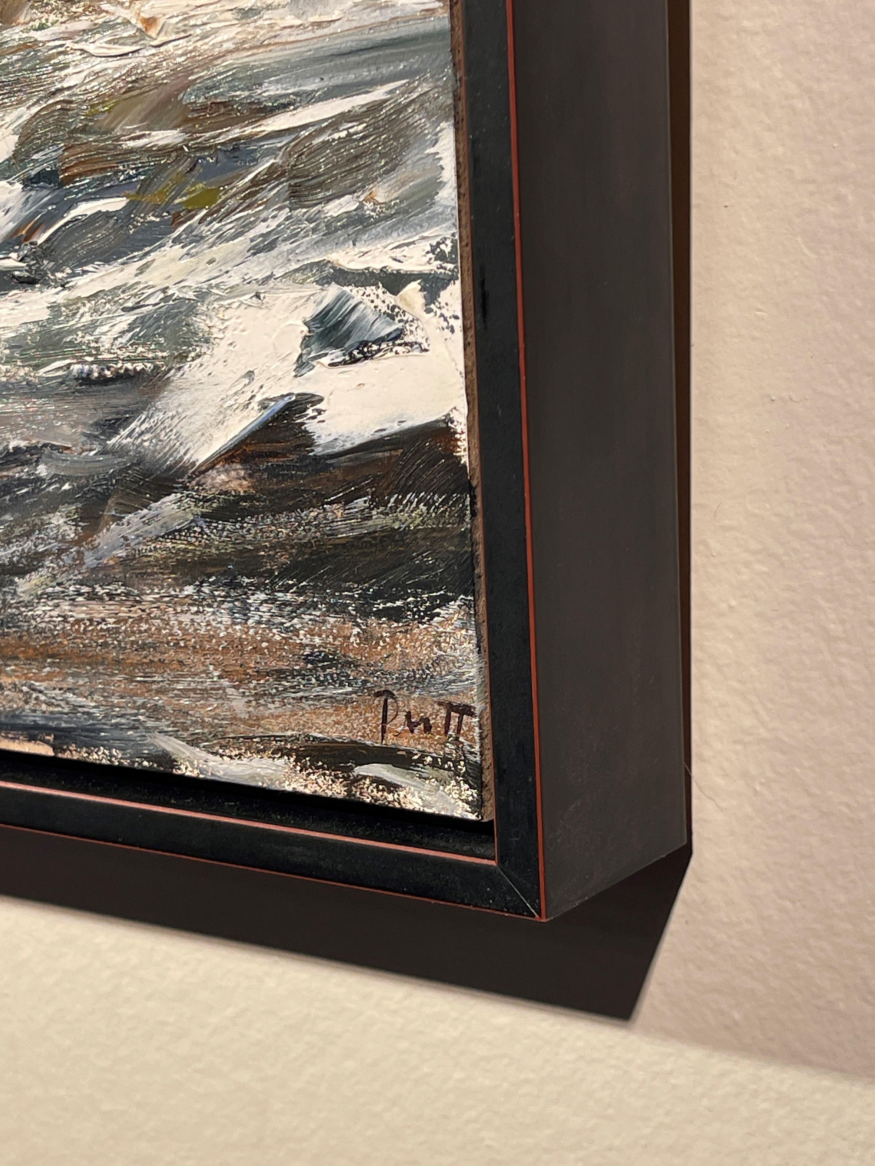 L'opera "Tempesta imminente" di Sandra Pratt, realizzata con olio su pannello di lino, è un affascinante dipinto di paesaggio che misura 20,32 x 40,64 cm. Questa opera d'arte origina...