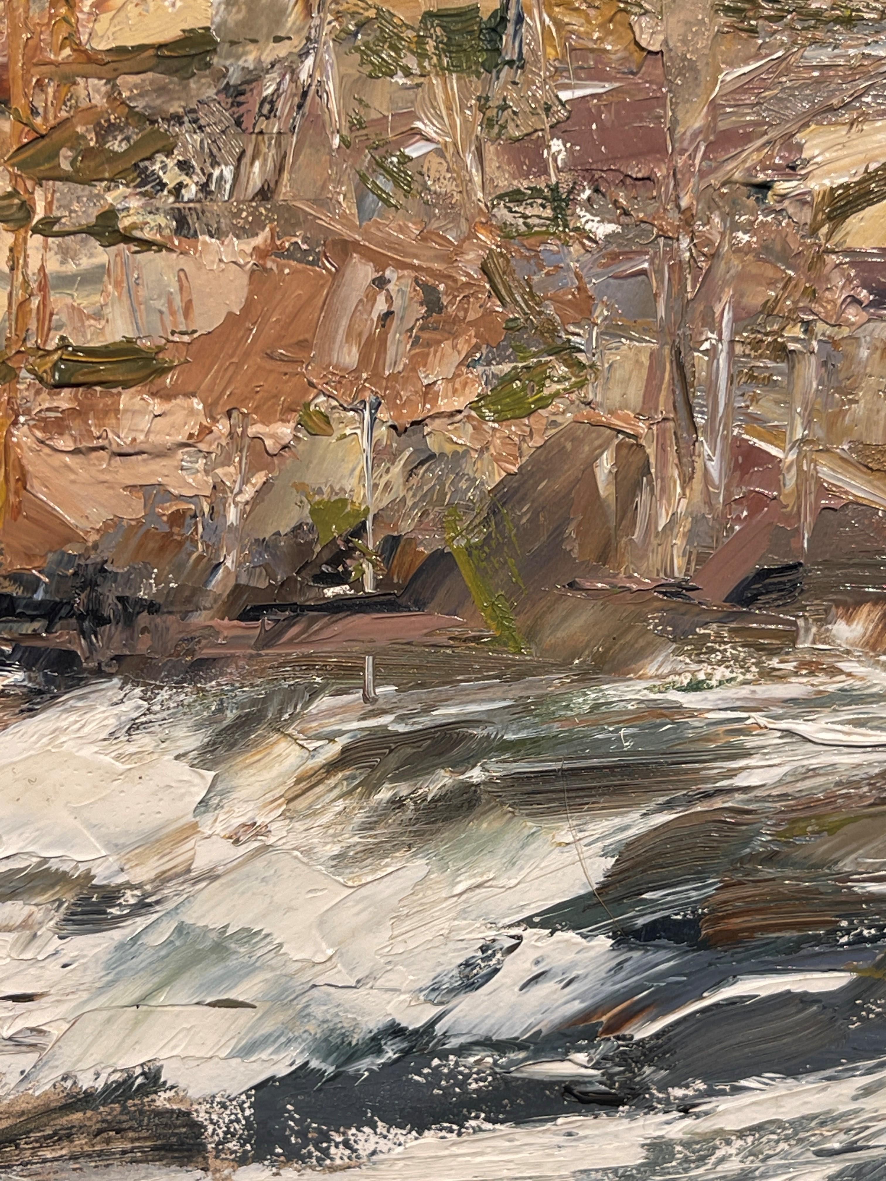 "Rock River", Paesaggio olio su tela firmato da I. Muller