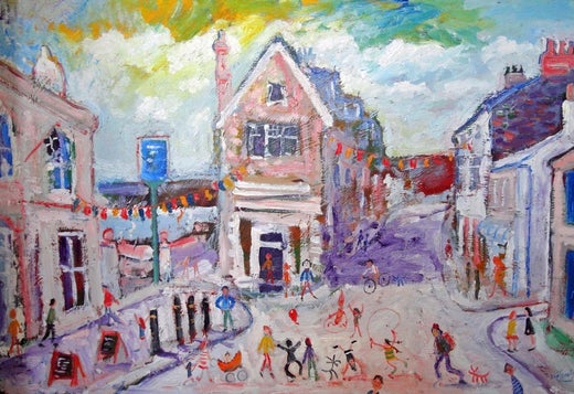 Simeon Stafford è nato a Dukinfield, nel Regno Unito, nel 1959. Da giovane artista, i suoi paesaggi erano simili ai grintosi paesaggi nordici di L.S. Lowry e di altri artisti inglesi del nord. All'età di 14 anni, Stafford incontrò L.S. Lowry, che lo incoraggiò a dipingere. Simeon si trasferì in Cornovaglia nel 1996, dove conobbe gli artisti Terry Frost e Patrick Heron. Così le sue radici nordiche si sono fuse con l'influenza del colore e della luce di Frost e Heron e con il magnetismo del West Penwith per creare un espressionismo all'interno del suo lavoro, che è allo stesso tempo potente e affascinante. Non si preoccupa di angoscia e di ricerca dell'anima, come dice lui stesso: ce n'è abbastanza nel mondo dell'informazione di oggi. Le opere di Stafford sono profondamente idiosincratiche e riflettono un mondo pieno di incidenti e imprevisti, con schizzi di colore vibrante e composizioni divertenti. An He combina in modo affascinante realtà e immaginazione: molti dei suoi dipinti raffigurano personaggi della sua famiglia, tra cui Dot Dot, la bambina che fa continuamente la verticale, Trixie, il Jack Black di famiglia, che ha vissuto fino a 28 anni e ora è impagliato e vive nella camera di Simeon, e l'asino nero del mare. Ampiamente considerato come uno dei principali artisti viventi del paese, Stafford ha esposto alla Royal Academy nel 2001 e nel 2003 è diventato membro della Royal Birmingham Society of Artistics. Le sue opere si trovano in numerose collezioni private, tra cui quelle di Sua Maestà la Regina Elisabetta e dell'ex Primo Ministro Tony Blair.