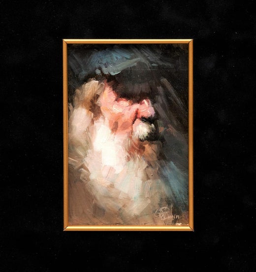 "Ritratto del saggio" di Emin Abbasov (nato nel 1950, Azerbaijan), olio su cartone
