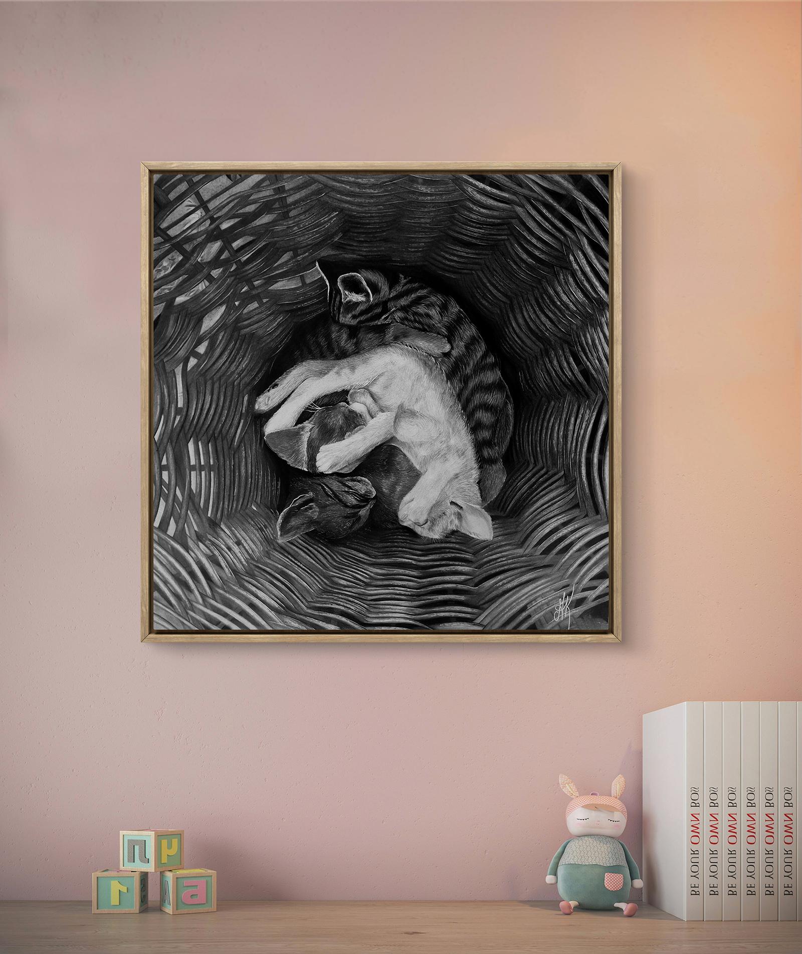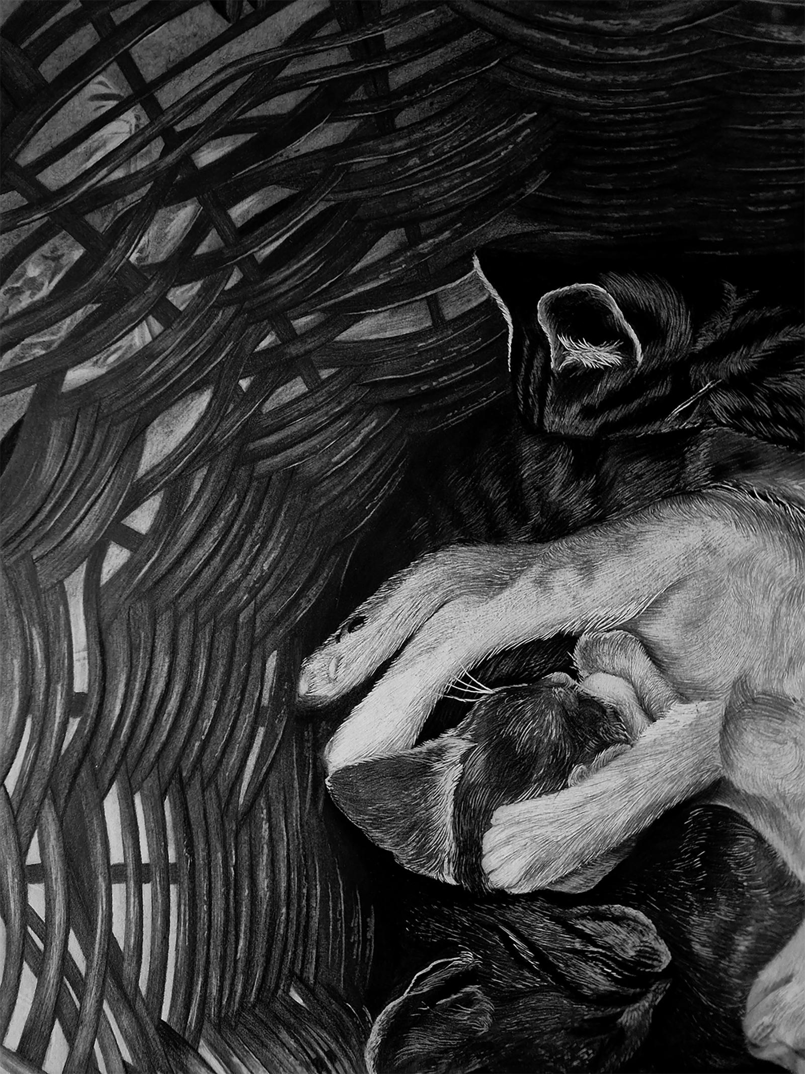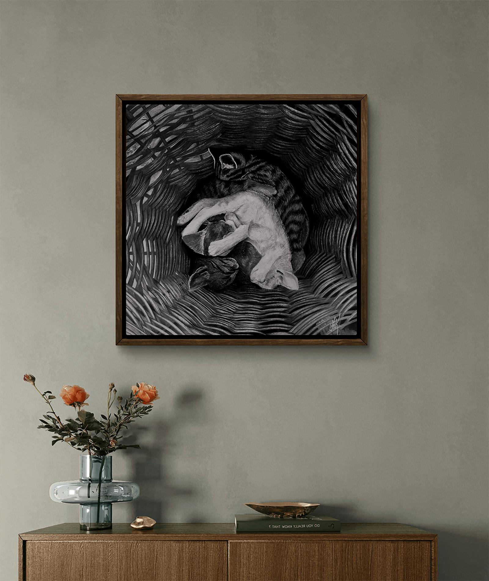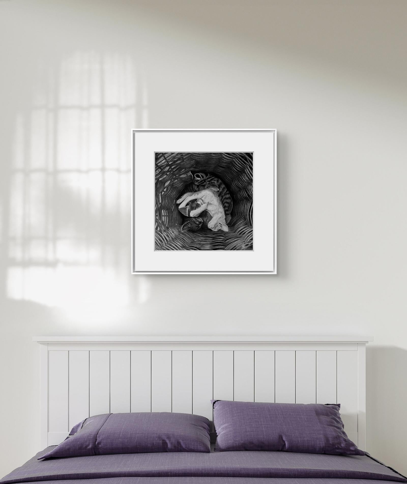 Pomeriggio - Disegno a carboncino contemporaneo del 21° secolo di un gatto