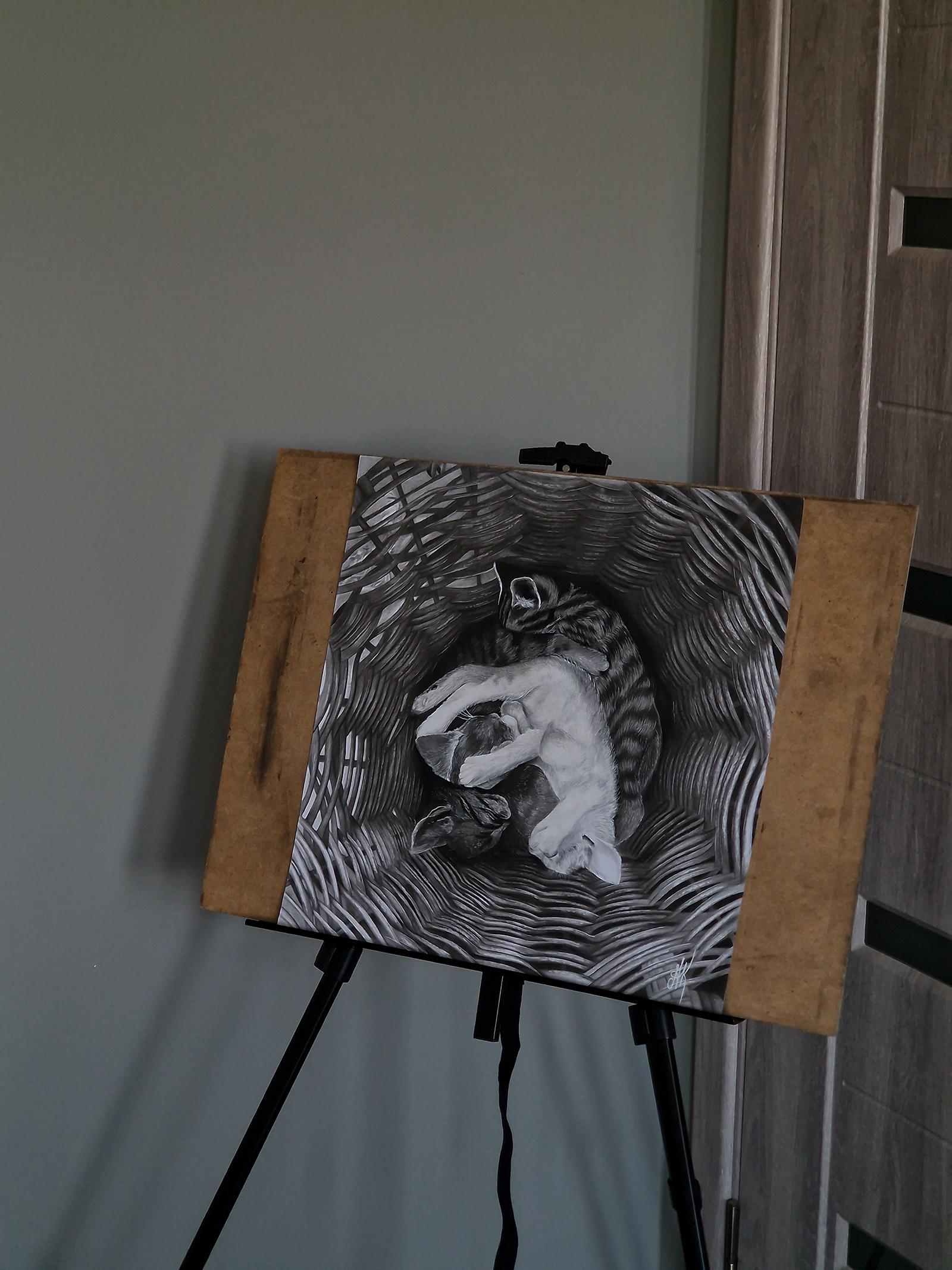 Questi giovani gattini si rallegrano sinceramente per ogni passante, che li guarda fiducioso negli occhi come se li invitasse a mostrare affetto. Dopo giochi vivaci e avventure, si sono accoccolati in un'accogliente cesta, diventando un caldo fascio di tenerezza e fiducia.