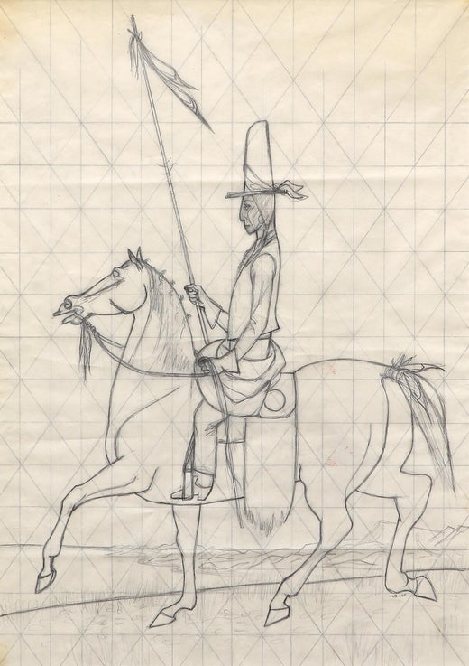 Soldato a cavallo - Disegno a matita - XIX secolo