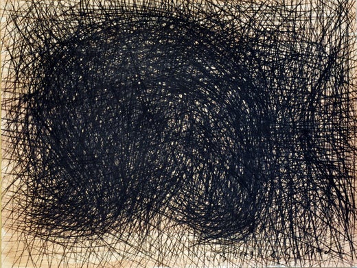 Mostra tuttoSenza titolo 1 - Pittura espressiva a carboncino su carta, disegno in bianco e nero