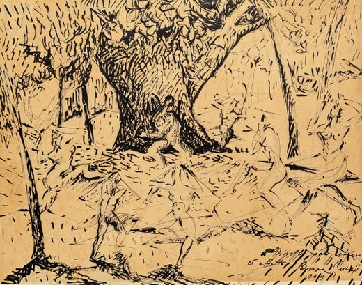 Disegno penna su carta firmata in basso a destra Colacicchi a matita.