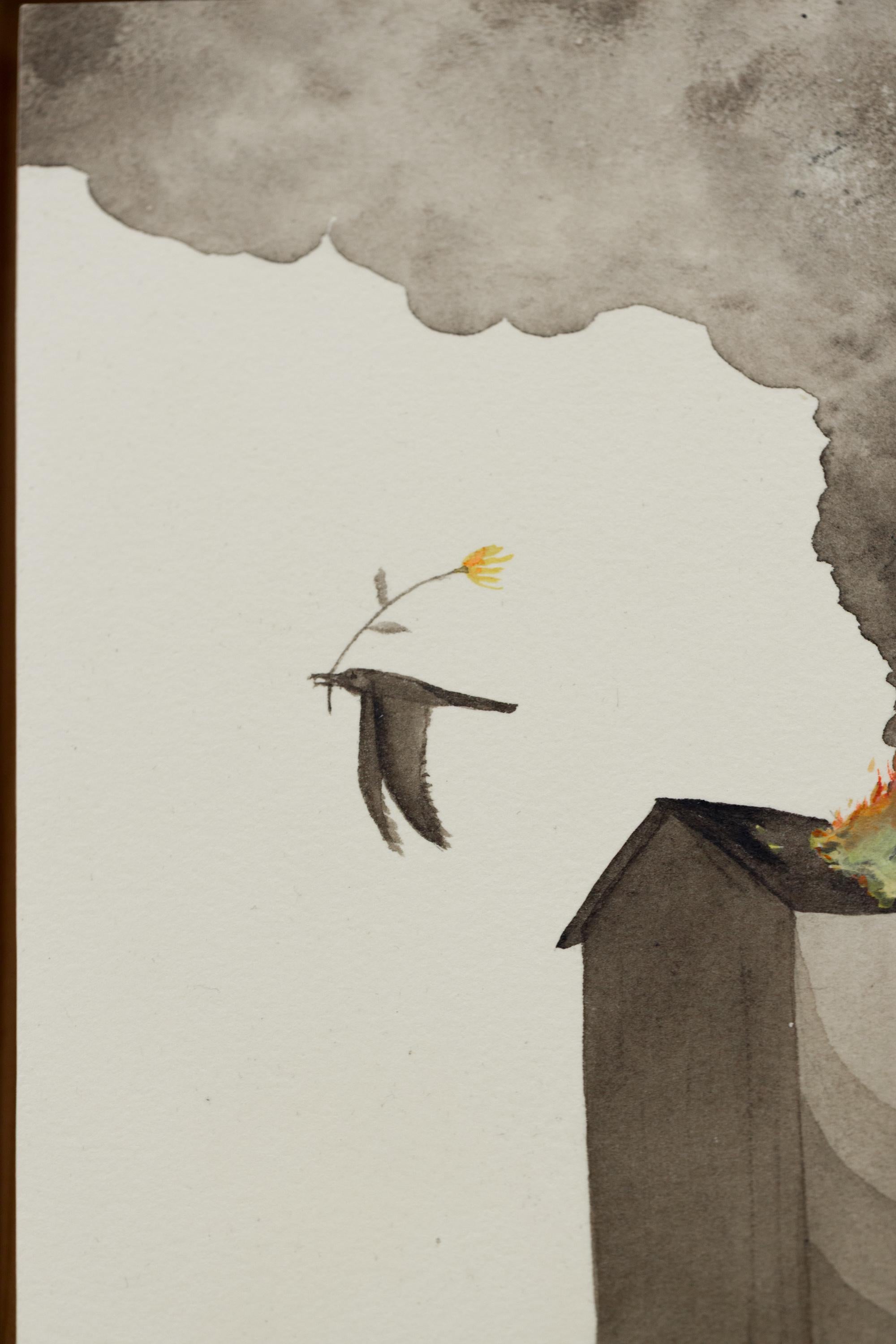 Graham Franciose"Un fiore reciso non può durare" Fumo e immagini di case in scala di grigi ad acquerello2025