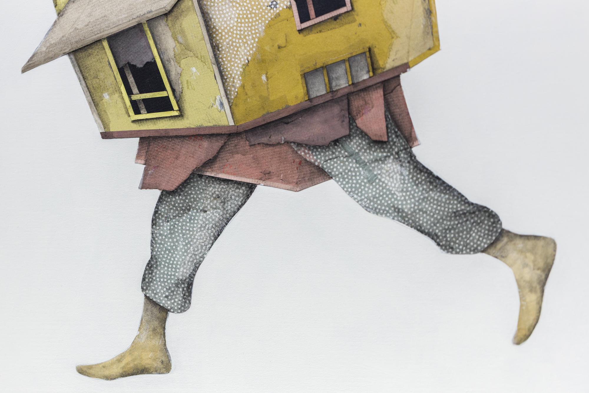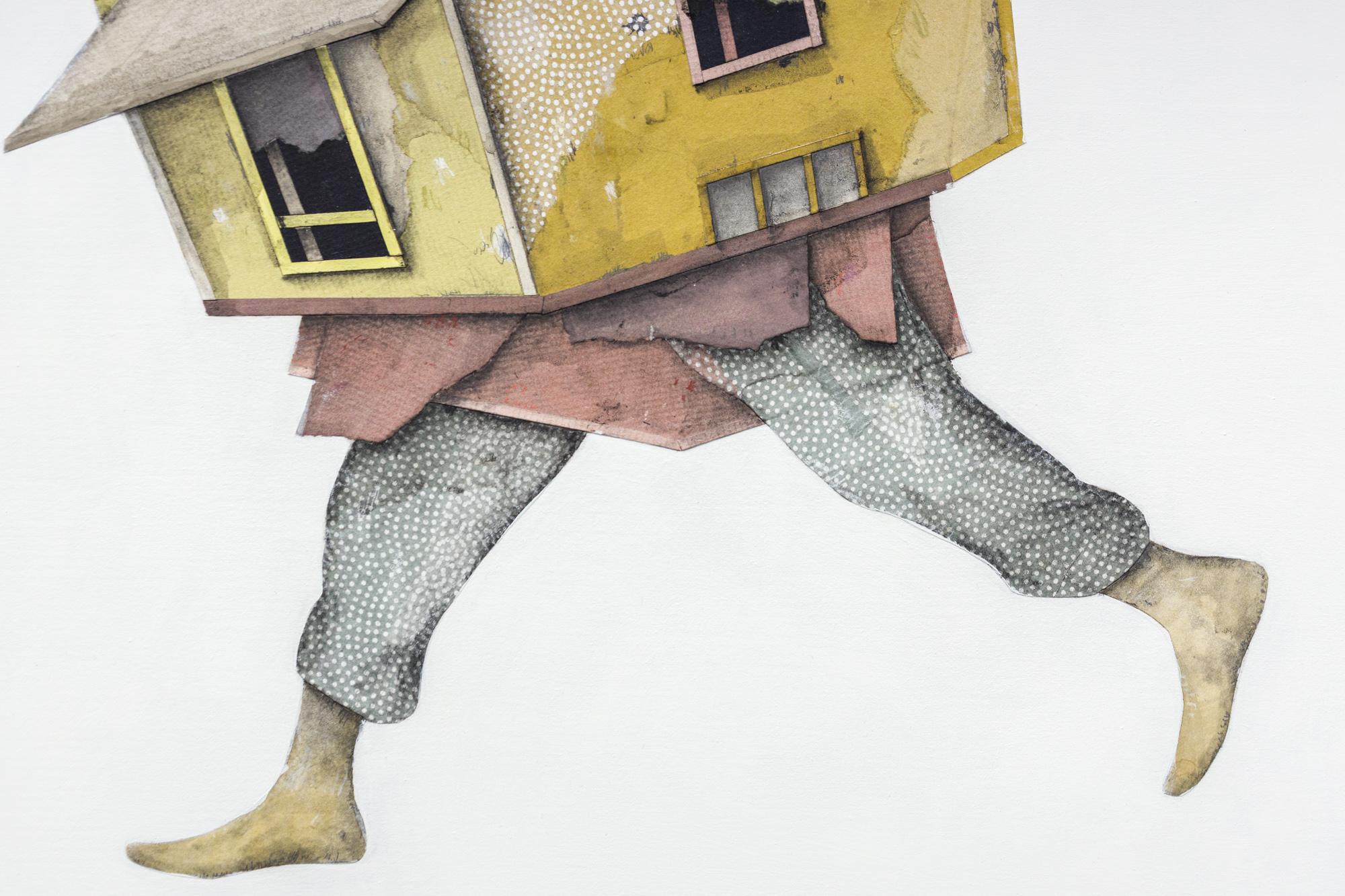 "Wanderer Study 2" Pittura ad acrilico, pastello e collage di un trasloco