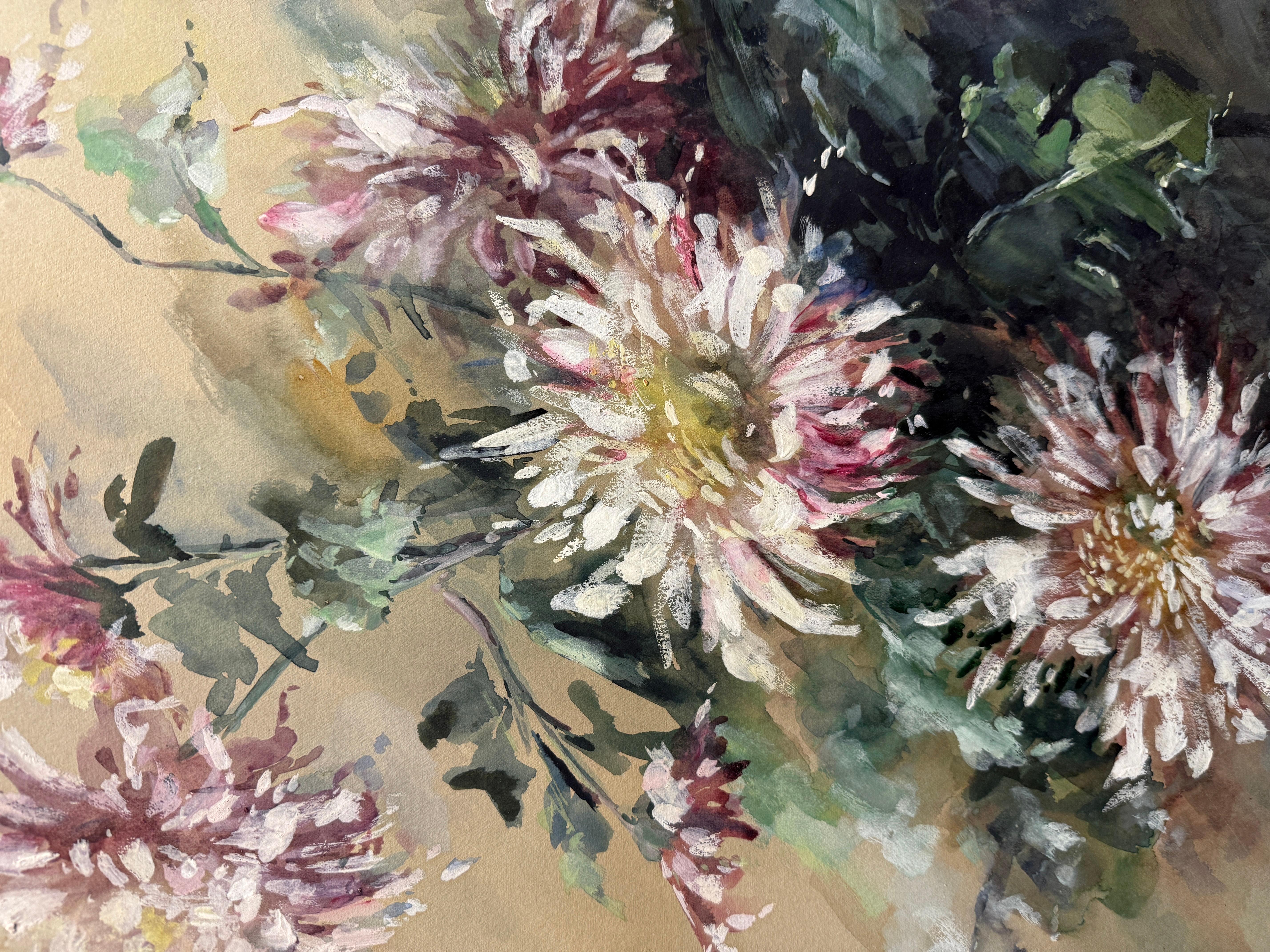 Crisantemi 1985. Carta, acquerello, 44x57 cm