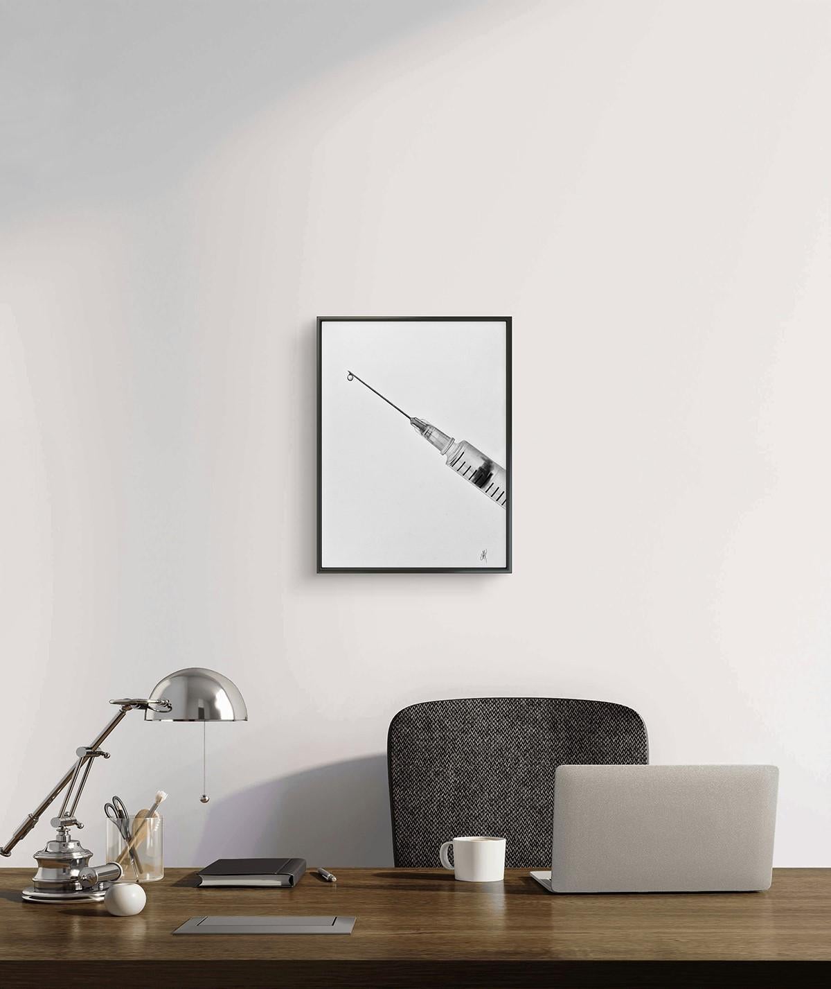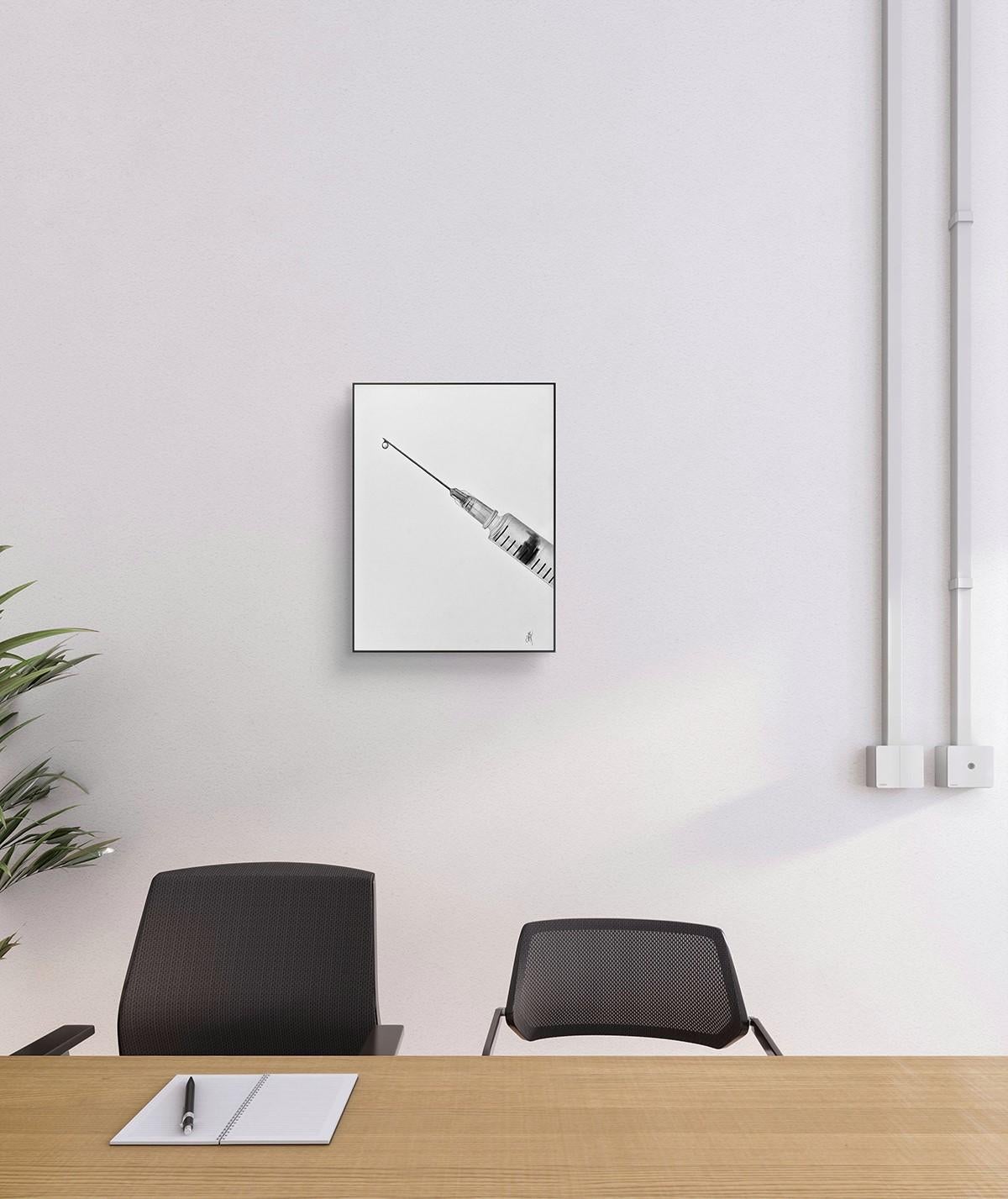 "Doctor III" - opera d'arte della serie "Portraits Without Faces". È incorniciato da una cornice nera e da un vetro lucido.
