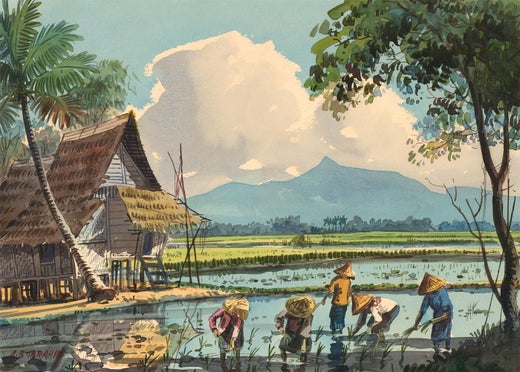 Abu Bakar IbrahimAbu Bakar Ibrahim (1925-1977) - Acquerello, Lavorare nelle risaieSconosciuto
