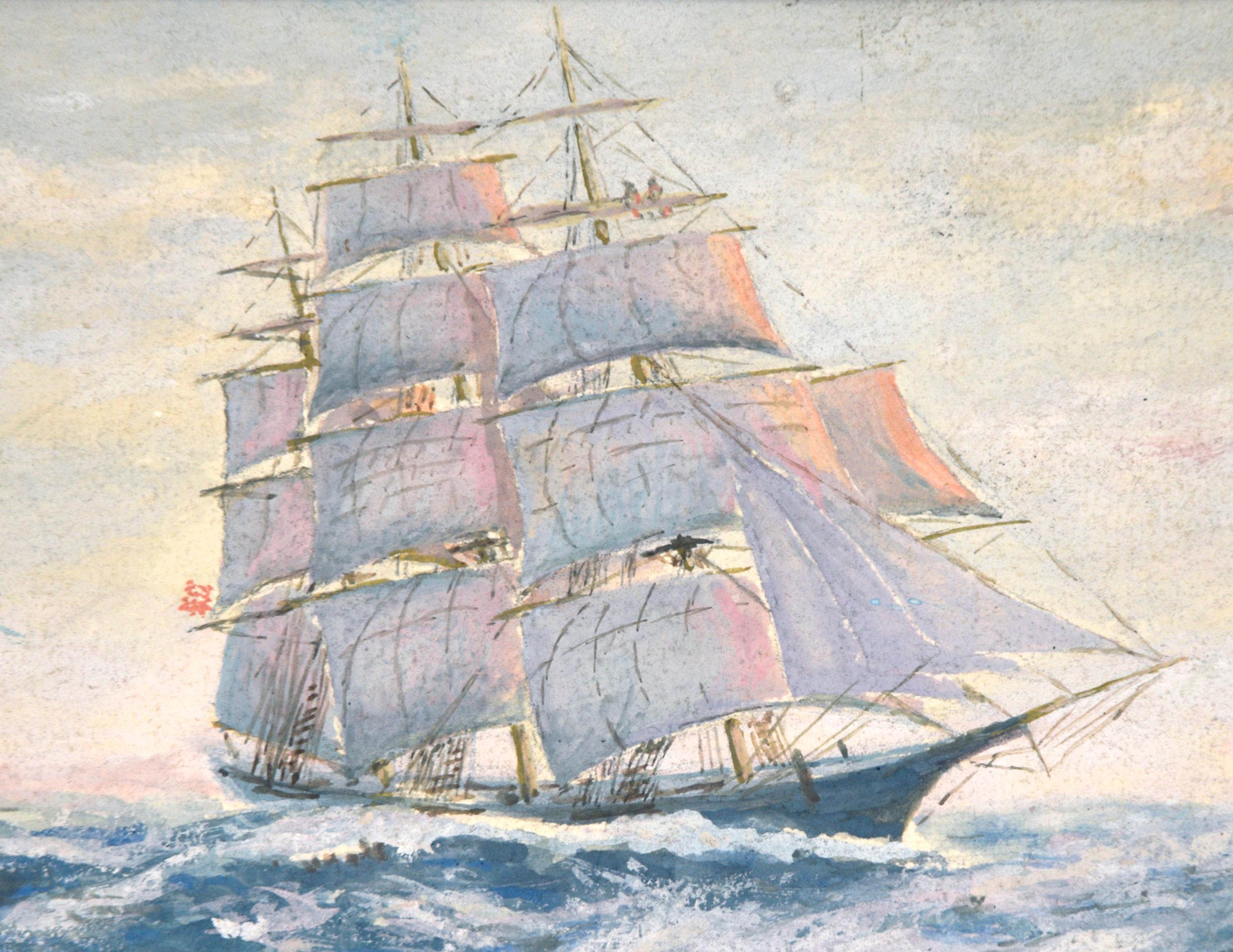 A.D. Bell (1884-1966) - Gouache del 1937, Clipper a tutta vela