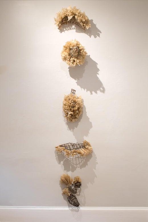 Eileen Braun si diletta a creare forme scultoree biomorfiche o organiche. Sebbene possano sembrare costruite con aste di metallo, in realtà sono create con canne di rattan e spago. U...