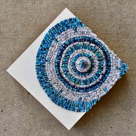 Jaynie Crimmins realizza oggetti con dettagli meticolosi fatti a mano che contrastano con la banalità dei loro materiali. La signora riutilizza sollecitazioni, buste di sicurezza e cataloghi che sono difficili da riciclare perché i loro inchiostri hanno spesso alte concentrazioni di metalli pesanti. Sminuzzando questi fogli, arrotola, piega, cuce e fabbrica i brandelli in intimi rilievi scultorei.