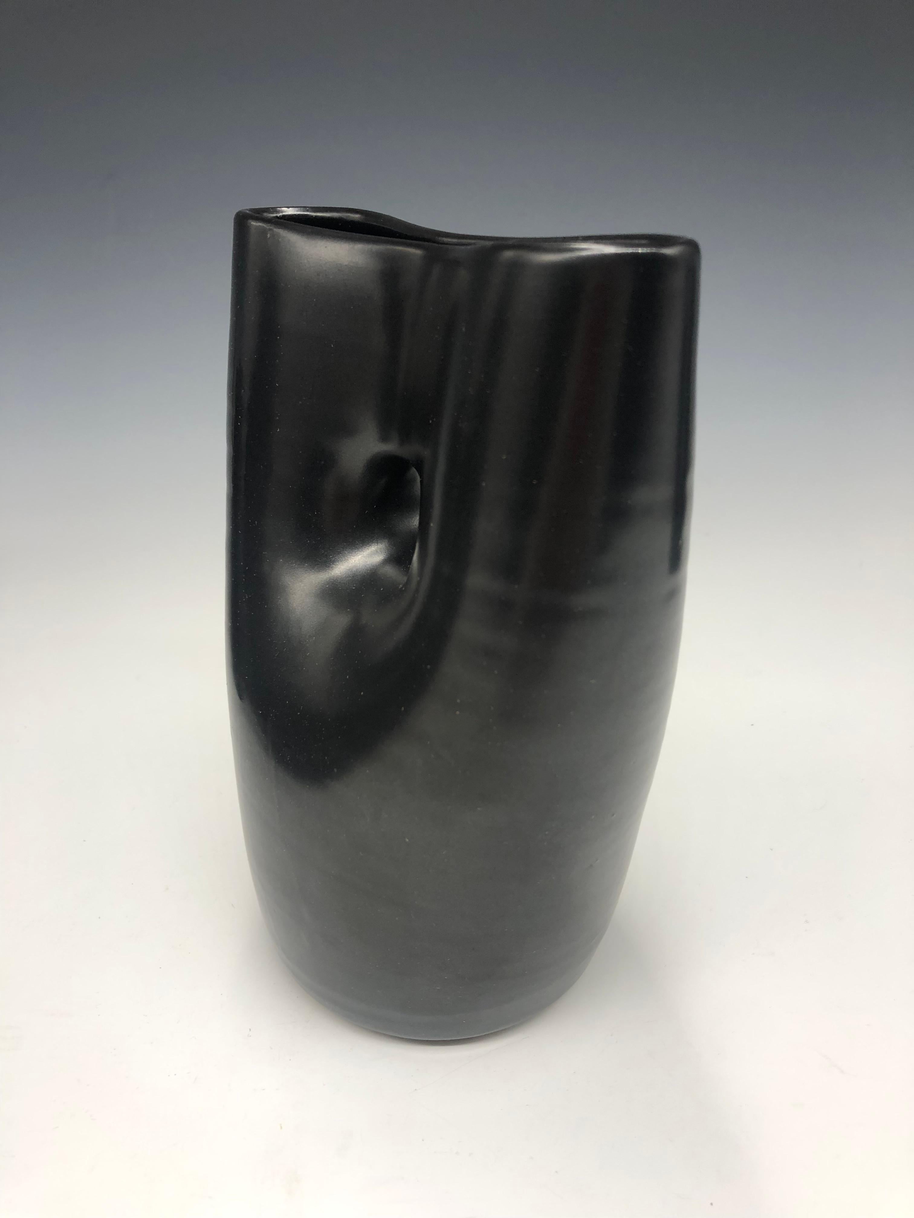 Grande vaso scultoreo in porcellana nera U con smalto satinato nero di Mary Black Jaffe.