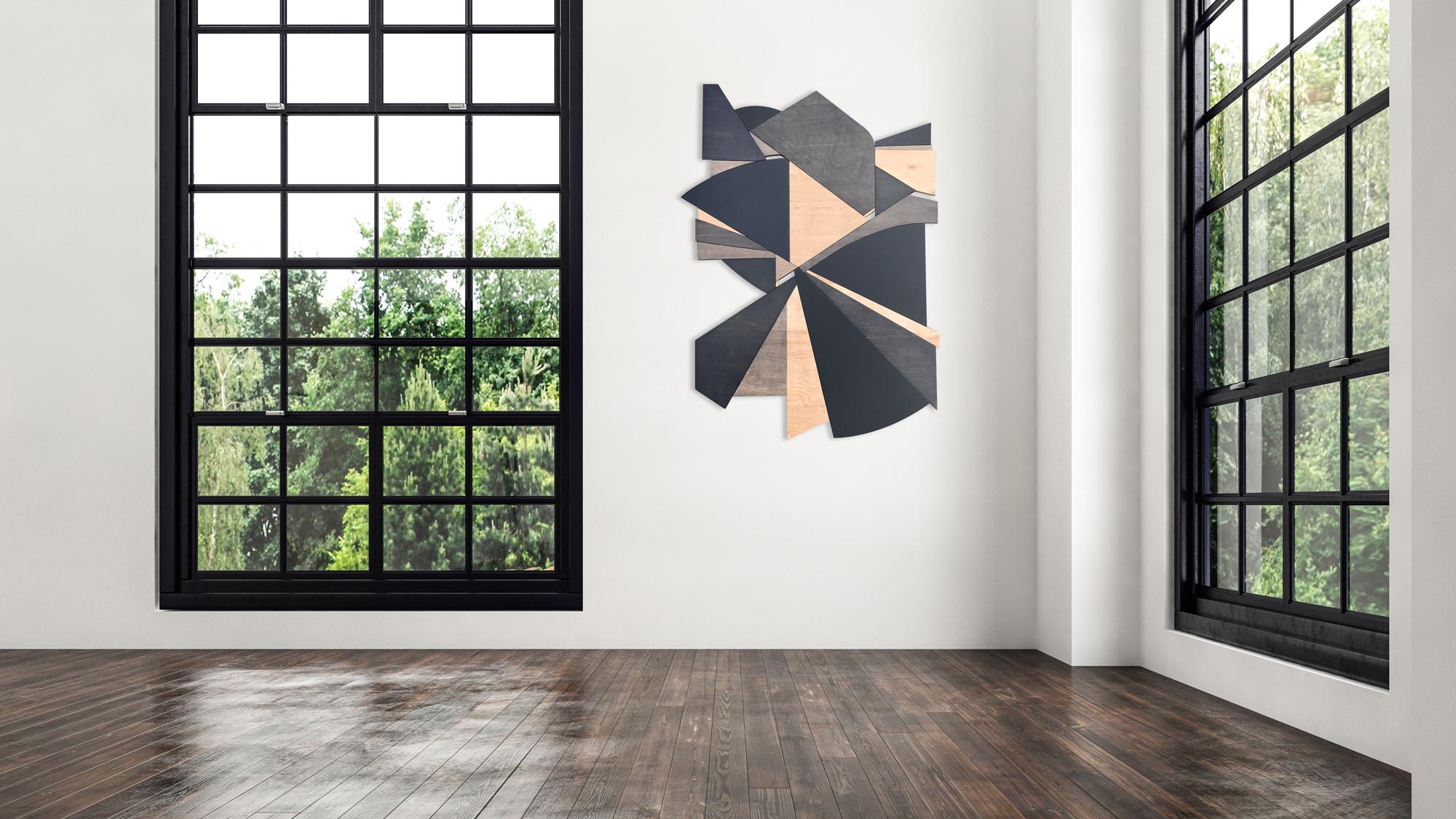 Scott Troxel"Scultura a parete in tecnica mista "Deceptor (Wood, nero, tan, monocromatico, mcm)2021