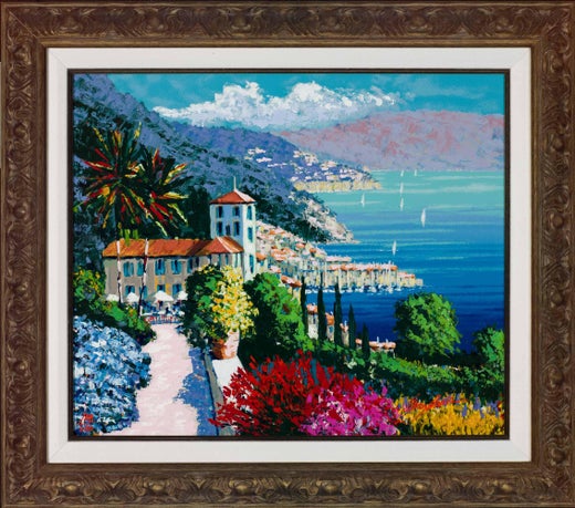 Kerry Hallam è stata una donna frizzante e vivace come i suoi dipinti, creando immagini allettanti grazie a palette audaci e composizioni accattivanti. Nato nel nord dell'Inghilterra nel 1937, Hallam dimostrò un talento artistico precoce quando vinse una borsa di studio di sei anni al Central College of Art dell'Università di Londra. Dopo un'educazione artistica formale sotto la guida dei maestri pittori britannici Leslie Cole, Patrick Heron e Hans Tisdale, completò il servizio militare nella prestigiosa brigata Gurkha a Hong Kong e in Malesia. Il talento di Hallam è stato ulteriormente riconosciuto quando è stato selezionato per essere inserito nella Royal Society of Artists in Watercolour della Gran Bretagna. L'entusiasmo per la sua arte è del tutto evidente nei vividi paesaggi marini spazzati dal vento e nelle scene di villaggio senza tempo e ricoperte di sole di Hallam. Fortemente ispirato dai Fauves, Hallam aveva una forte affinità con i post-impressionisti francesi del XIX secolo: Cezanne e Van Gogh. Tra la fine degli anni '60 e l'inizio degli anni '70, la sua carriera artistica è stata arricchita da cinque anni di attività musicale, suonando con musicisti come James Taylor e Linda Rondstat. Nel 1996, una raccolta di canzoni originali di Kerry Hallam è stata pubblicata sul compact disk Autumn Harvest. Nel 1973 Kerry si trasferì nel New England e si dedicò completamente alla pittura. In seguito aprì il suo primo studio a Boston e nel 1981 aprì uno studio e una galleria sull'isola di Nantucket. Da quel momento visse e dipinse in molte parti degli Stati Uniti, ma alla fine il New England divenne la sua casa permanente. Ispirato anche da St. Tropez e dalla Costa Azzurra, Hallam tornava spesso in quei luoghi per rinnovare il suo spirito. Noto per il suo potere di evocare emozioni, per l'opulenza della luce e per le distintive armonie di colore, Hallam eccelleva nel tradurre il momento ordinario in magico, invitandoci a essere rivitalizzati dai semplici piaceri del mondo. I suoi panorami hanno ottenuto molti riconoscimenti, tra cui il primo premio della prestigiosa L'Association Pour le Promotion Artistique Francais. Le sue opere sono presenti in collezioni di tutto il mondo, tra cui quelle di Brigitte Bardot, Bjorn Borg, Lindsay Davenport, la Marchesa di Queensbury, Lady Caroline Townsends e il Virginia Heart Institute. Grazie a innumerevoli mostre personali, Kerry Hallam è stata premiata da gallerie di tutto il mondo e ha esposto a Parigi, Londra, Tokyo, New York, Beverly Hills, Hong Kong, San Francisco e in molte altre città. Il suo lavoro è stato pubblicato in innumerevoli articoli di giornali e riviste e in speciali televisivi della PBS. Le raccolte visive delle opere dell'artista sono attualmente disponibili nelle monografie Kerry Hallam, Far Horizons: A Celebration of Life e Kerry Hallam, Artistic Visions.