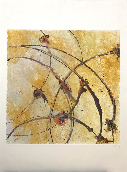Nodi di fuoco Medio: Monotype su carta d'archivio Dimensioni: 20 x 20 dell'artista sudamericana/venezuelana Luisa Duarte è un esempio di arte astratta geometrica. Luisa Duarte lavora...