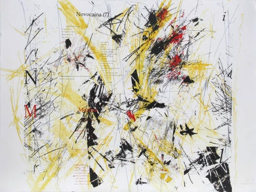 Abecedario (Giallo), stampa digitale astratta e acquaforte di Sandro Martini