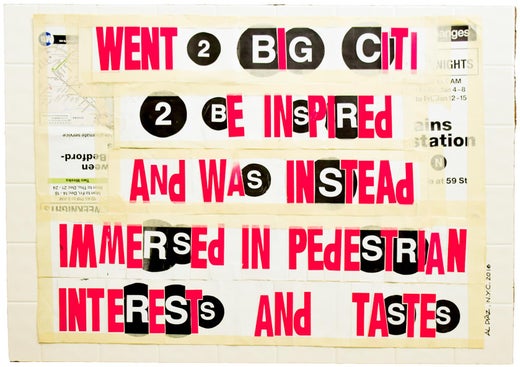 L'artista ha incorniciato quest'opera in una cornice di alluminio simile a quella che si trova nelle bacheche pubblicitarie della metropolitana di New York.