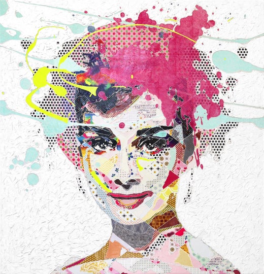 Le opere originali a tecnica mista di Alea Pinar Du Pre ritraggono figure umane in uno stile grafico pop-realista. Un'intraprendente autodidatta che fonde tecnologia e belle arti, le sue vibranti opere d'arte pop-figurative contemporanee esplorano in modo colorato il territorio tra realtà umana e realtà artificiale. I suoi dipinti ritraggono il fatto che le nostre percezioni della realtà solida sono ingannevolmente virtuali. Questo collage unico fa parte della serie "Snapshot", come spiega l'autrice: