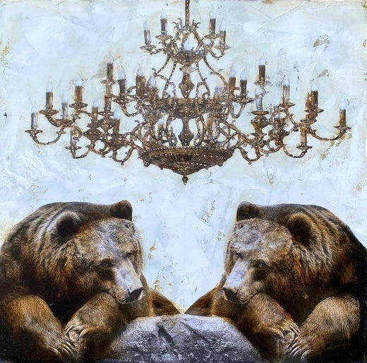 Gli artisti Luis Garcia-Nerey e Anke Schofield esaminano i confini tra gli animali non addomesticati e gli ambienti domestici nella loro meravigliosa collaborazione chiamata KOLLABS. Ognuno dei suoi dipinti - che di solito sono opere a tecnica mista con fotografie di animali selvatici, ritagli di pubblicità su riviste e altro - esplora l'equilibrio tra gli esseri umani e le creature della foresta, invitando gli spettatori a riflettere sul proprio rapporto con la Nature.