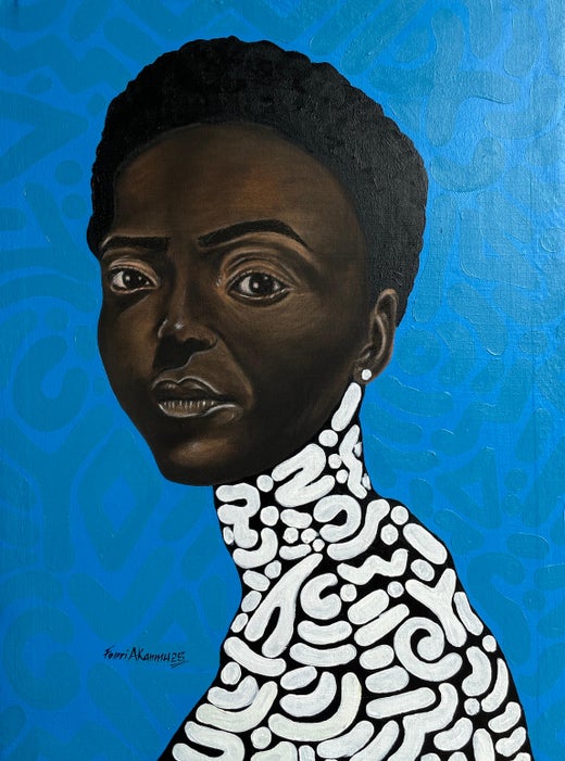 In un mondo che spesso impone standard e aspettative, l'opera ci invita a riflettere sull'importanza dell'accettazione e dell'espressione di sé. Ci ricorda che la vera bellezza non sta nel conformismo, ma nell'abbracciare il nostro io autentico. Ritraendo la giovane donna con sicurezza e grazia, Akanmu sfida le norme della società e incoraggia gli spettatori a coltivare la propria forza interiore.