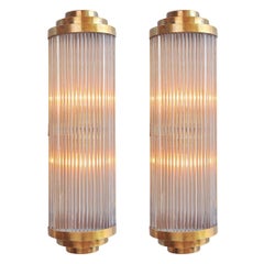 Coppia di grandi lampade da cinema in plexiglass e ottone, anni '50, Italia Applique da cinema o teatro molto eleganti e rare. Sono lampade da parete di grandi dimensioni Prodotto ...
